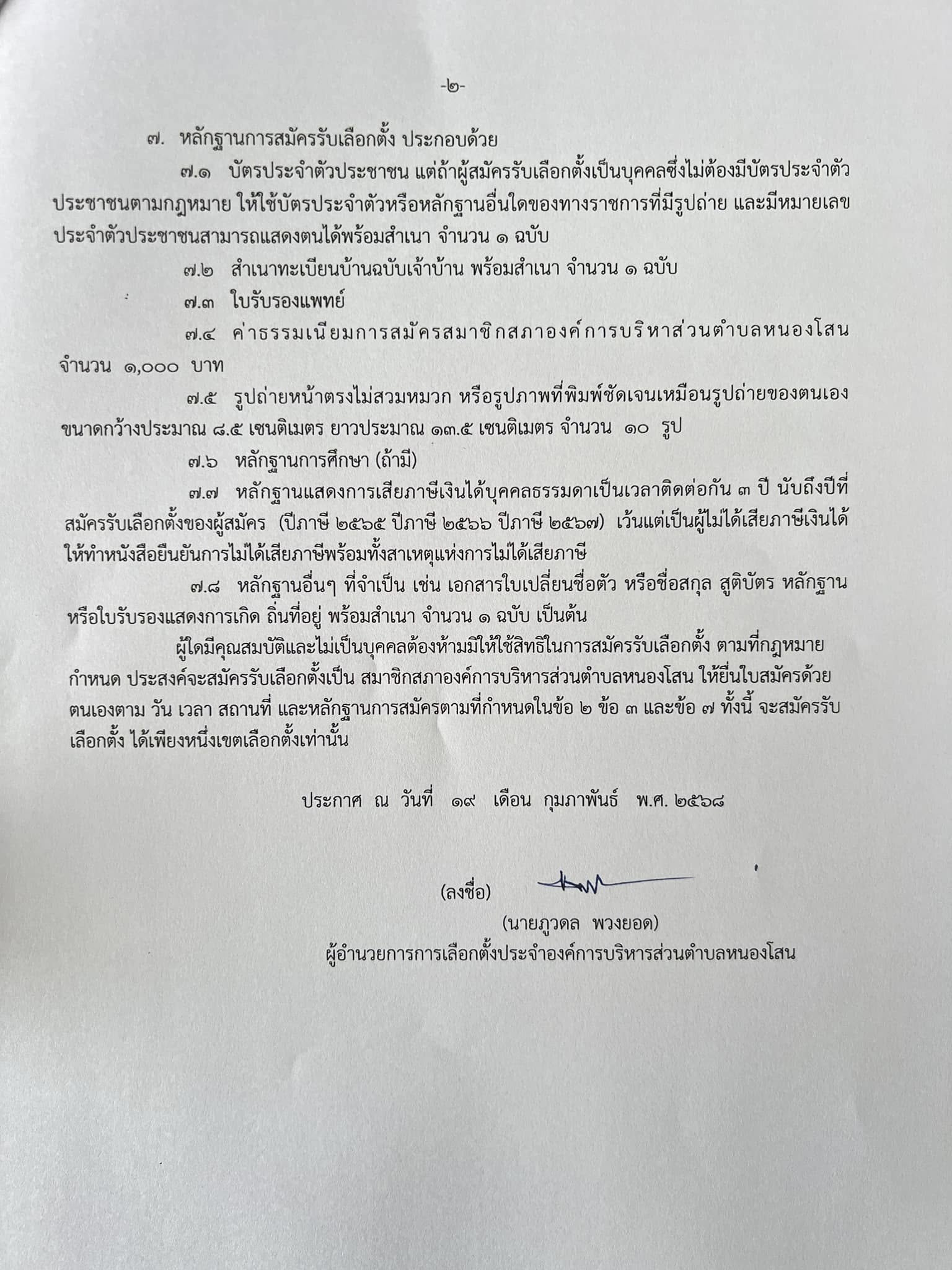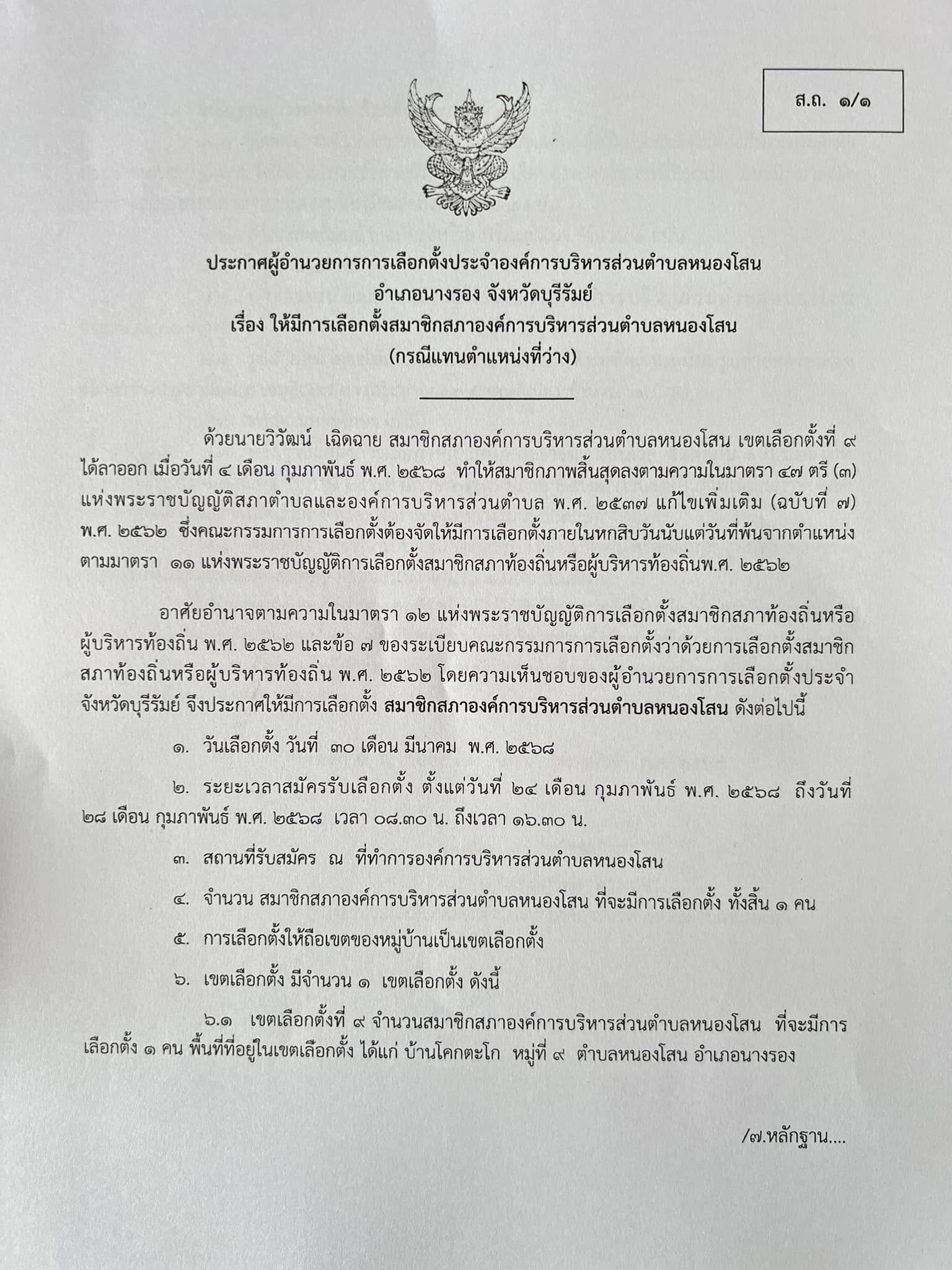 องค์การบริหารส่วนตำบลหนองโสน ประชาสัมพันธ์การเลือกตั้งสมาชิกสภาองค์การบริหารส่วนตำบลหนองโสน เขตที่ ๙ (กรณีแทนตำแหน่งที่ว่าง)