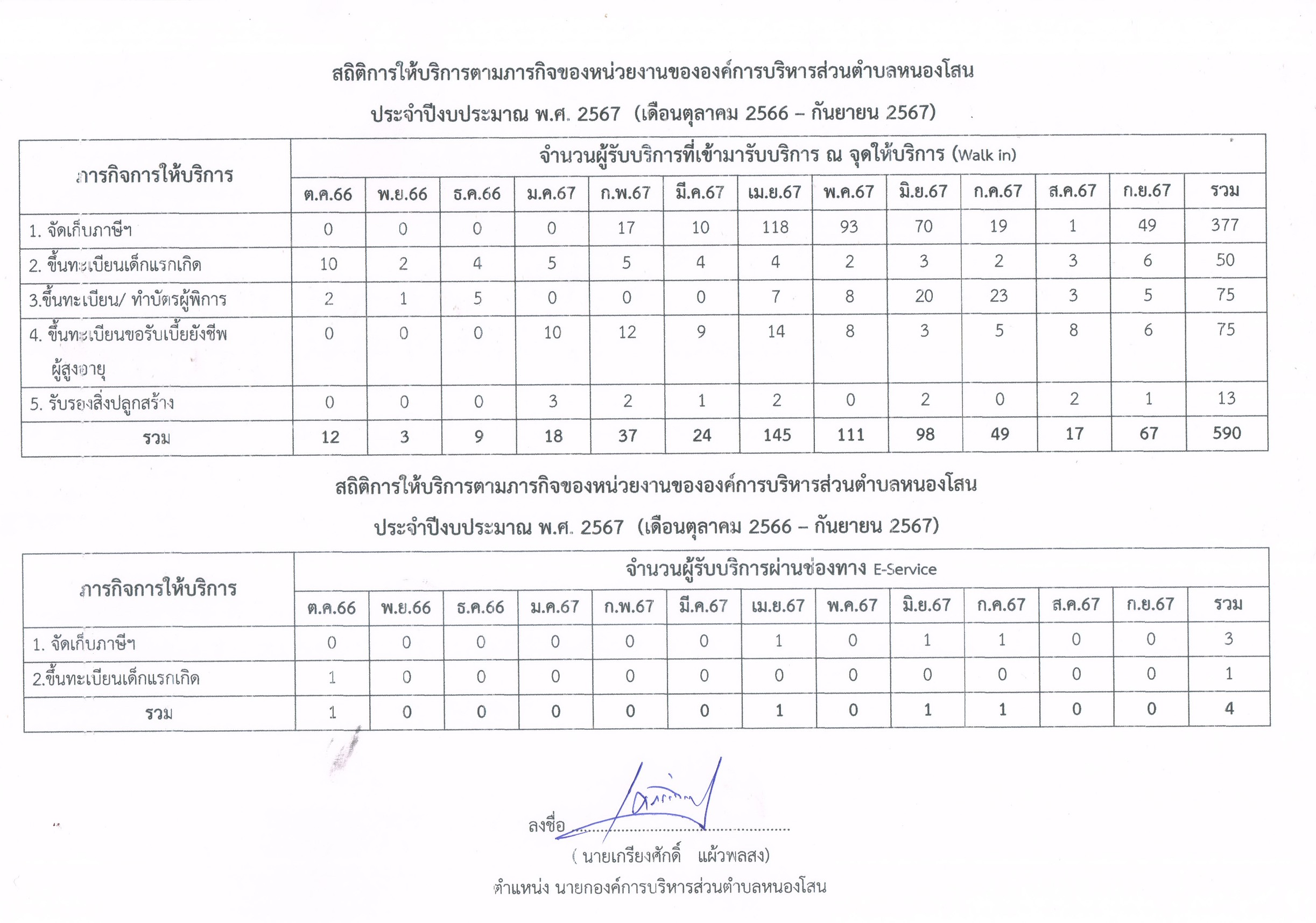 สถิติการให้บริการตามภารกิจของหน่วยงาน ประจำปีงบประมาณ พ.ศ. 2567 (เดือนตุลาคม 2566 - กันยายน 2567)