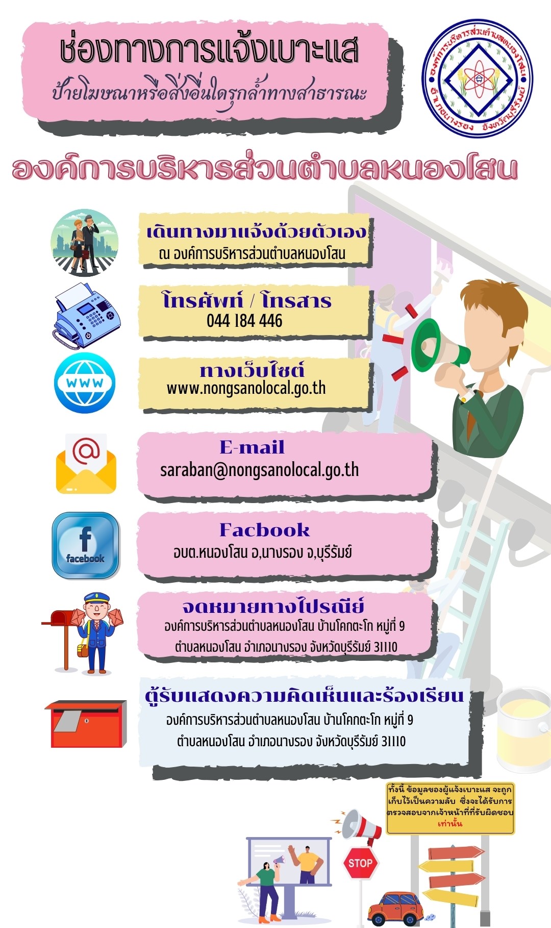 ช่องทางแจ้งเบาะแสป้ายโฆษณาหรือสิ่งอื่นใดที่รุกล้ำทางสาธารณะ